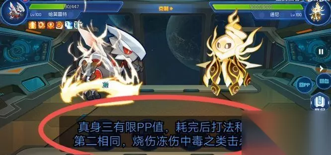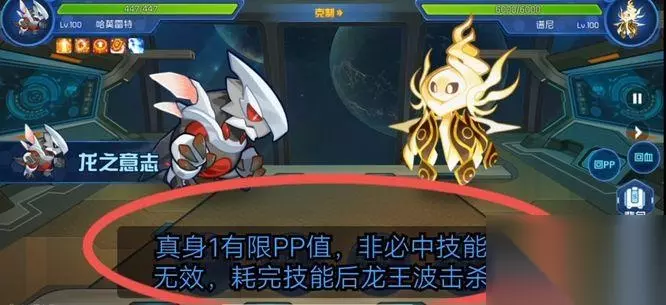 谱尼真身4是有限的PP值,每回合回血2千,推荐最快反转后,鲁斯王加攻击再秒杀。