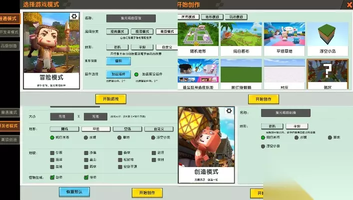地图创作基础准备 在开始制作地图前,玩家需要先进入游戏的创造模式,该模式提供无限资源,让创作者可以专注于设计而无需担忧材料收集。点击主界面的"开始游戏新世界"选择"模式"即可开启地图制作之旅。建议新手在设置中将"默认地形"选项调整为能获得平整的空地作为创作画布。