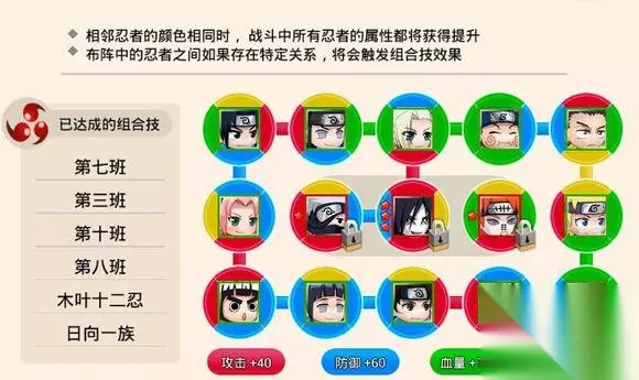 忍术首选:怪力(出产人:小樱)、冰晶(出产人:白)、毒雾:(出产人:→_→好多数不完)、治疗术(出产人:医疗系的忍者)、冰冻术(某情况下起到逆袭)。神术:高级治疗术(出产人只有钢手)、冰晶(前期很有用、所以也称为神术) 忍术分析: 怪力(D级):是目前最实用的,它的伤害算中等,但它胜在次数和触发率。所以目前可称为一哥。 冰晶(B级):降低别人(下一回合)命中(相当于提高自身闪避),让别人很难命中你(闪避率达到30%)。触发率和次数都很高,目前是特殊级别。 治疗术(D级):听名字就知道,什么都不用说,游戏中没有什么人不要回血的! 毒雾(D级):忍界大战、尾兽必须要用的。 高级治疗术(S级):它是治疗术加强版! 忍术组合:通用平民:怪力一个(两个也行),冰晶必要的(60级之前有多少要多少),毒术带一个(可无),治疗术一个就好。 作为福利给大家一个组合技的推荐,下面是组合技能推荐。