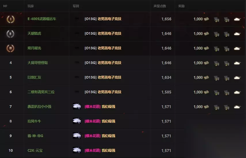 OBG人员因WCL比赛时间的缘故,缺席了八点和九点的战斗,樱木花道趁此机会反超OBG部分队员,成功登上个人前十的后四位。 军团前十