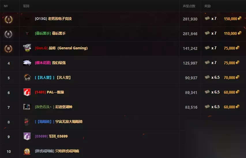 OBG和幕后黑手之间仅仅只有不到100分的差距,幕后黑手昨晚只要多赢一场战斗就已经完成反超了,错失了一个登顶的机会呀,但是军团积分的积累,让跳海升级科技之后的军团声望获取将一飞冲天。 当日积分增长之最