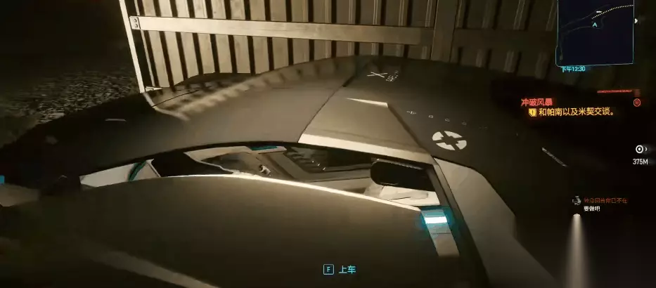 赛博朋克2077中,石中剑是一个非常拉风的跑车载具,车体可以变形在街道上驰骋,十分炫酷。石中剑的基础获取方式需要玩家完成一系列的任务才能得到,而今天小编为大家带来的方法则可以省去这些步骤。首先在开始前我们需要在夜之城中找到NPC帕南,与她进行对话后我们可以领取到一个任务“冲破风暴”。