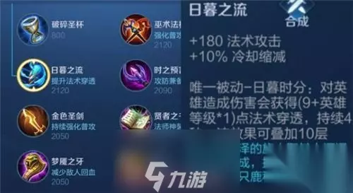 一、王者荣耀日暮之流有什么用 1、 日暮之流的属性加成包括180法术攻击和10%冷却缩减,而唯一被动效果则是对敌方英雄造成伤害时,将获得(9+英雄等级*1)点法术穿透,持续4秒,可叠加至10层。 2、 虽然从属性面板上看,该装备的属性增益一般,但其独特的被动效果使得法术穿透属性能够叠加至最高达240点,相当于对敌方法术防御轻松无视240点。 3、 在实战中,日暮之流展现出对高频率法师(如嬴政、安琪拉、上官婉儿)的出色效果。 4、 该装备能够迅速削减目标的魔法防御,在短时间内显著提升法术伤害输出。 5、 然而对于一些法师英雄(如墨子和司马懿)来说,由于其缺乏持续伤害技能,日暮之流的增益效果相对有限。