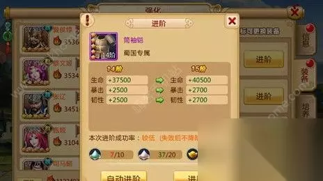 另外由于在+15后有概率降阶,而升到+15所需要的令牌大概为1W左右(具体要看脸),因此建议大家在培养特殊装备时,先升阶再升星,因为升阶能提升装备的基础属性,而升星是按照装备基础属性进行百分比加成的。 升到+15后就推荐升星,因为后续升阶难度较大,不仅消耗资源多,成功率也比较低。