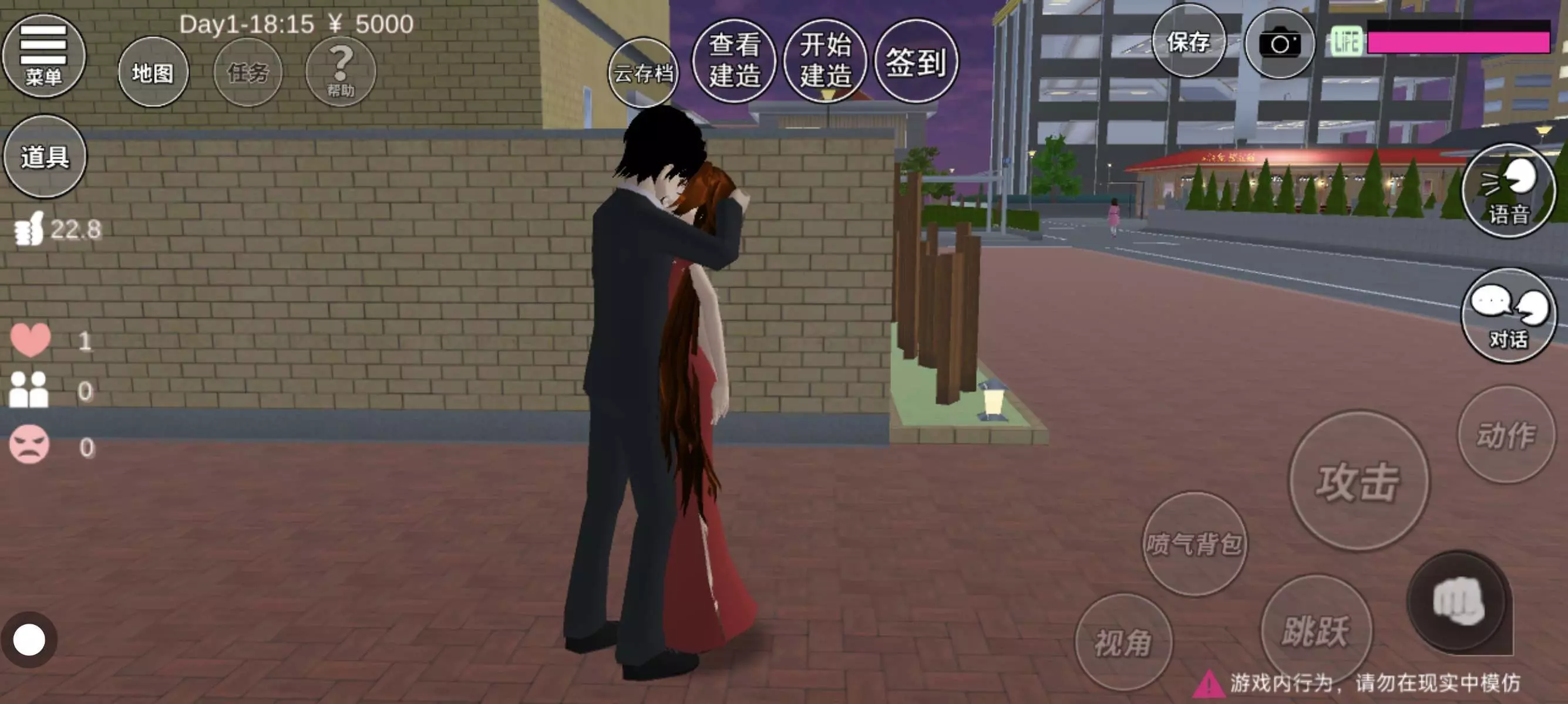 樱花校园模拟器超级好玩哦!特别爱玩!超级治愈!可以开启甜甜的高中恋爱生活!