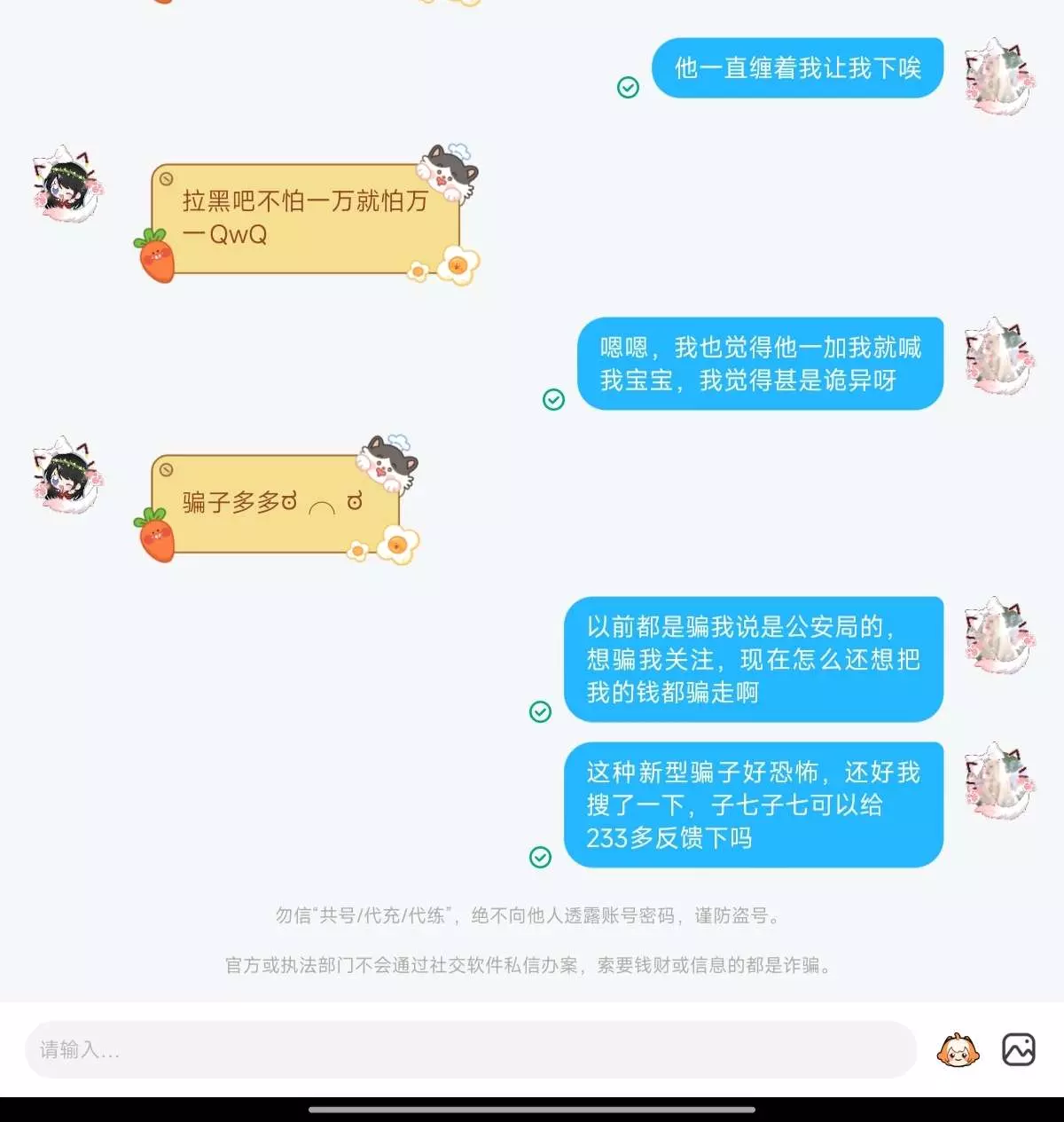 #申请精华 大家注意啊,天上不会砸馅饼啊!千万不要轻信陌生人,还好我去搜了一下,要没搜指不定就被骗了😭希望大家能多多看到,不要相信呀,一开始我差点就信了。在家遇到这种建议去查一下吧,说不定就是哪种套路,已经反馈给子七了,没有挂他233号哈,不想让大家都去骂他,只希望大家能分清楚