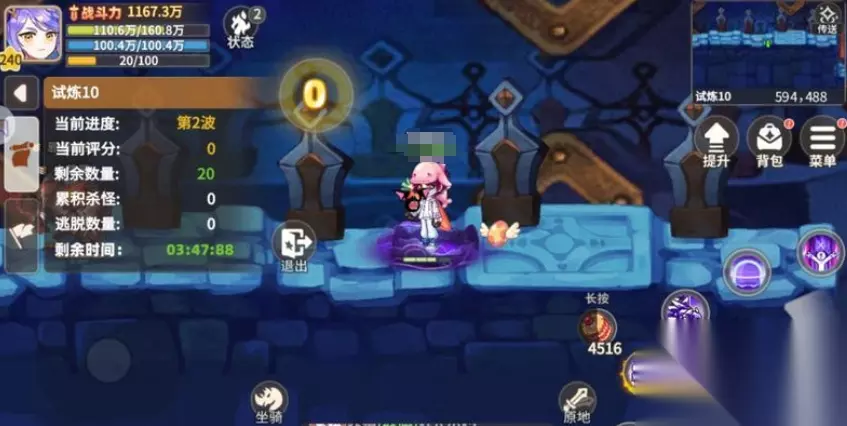 试炼15的话这关的关键在于与BOSS保持距离,进入副本后玩家应首先走在BOSS手下,找到一个比较安全的站位,与BOSS保持安全距离后,原地挂机进行输出即可实现无伤通关,试炼20大家是需要打败敌人的同时并在副本当中坚持四分钟,所以这一关需要在最左边或右边原地挂机大约2-3分钟,这里的具体时间取决于当前玩家自己的清怪能力,当倒计时还剩约一分钟时,出现的怪物会比较强力,此时玩家可能无法轻易击败它们。 这时大家就可以利用飞翔石的多段跳跃技能,从左边跳到右边再从右边跳回左边即可躲避怪物攻击,如果中途不幸死亡,只需在原地复活即可继续挑战,这里有个小窍门是复活有倒计时,可以在倒计时还剩最后2-3秒时再复活哦,而噩梦难度下的水晶保卫战是时空裂隙中的最后一个挑战,这三个难度级别采用统一模式,但需要玩家提升战力才能守护更高难度的水晶。
