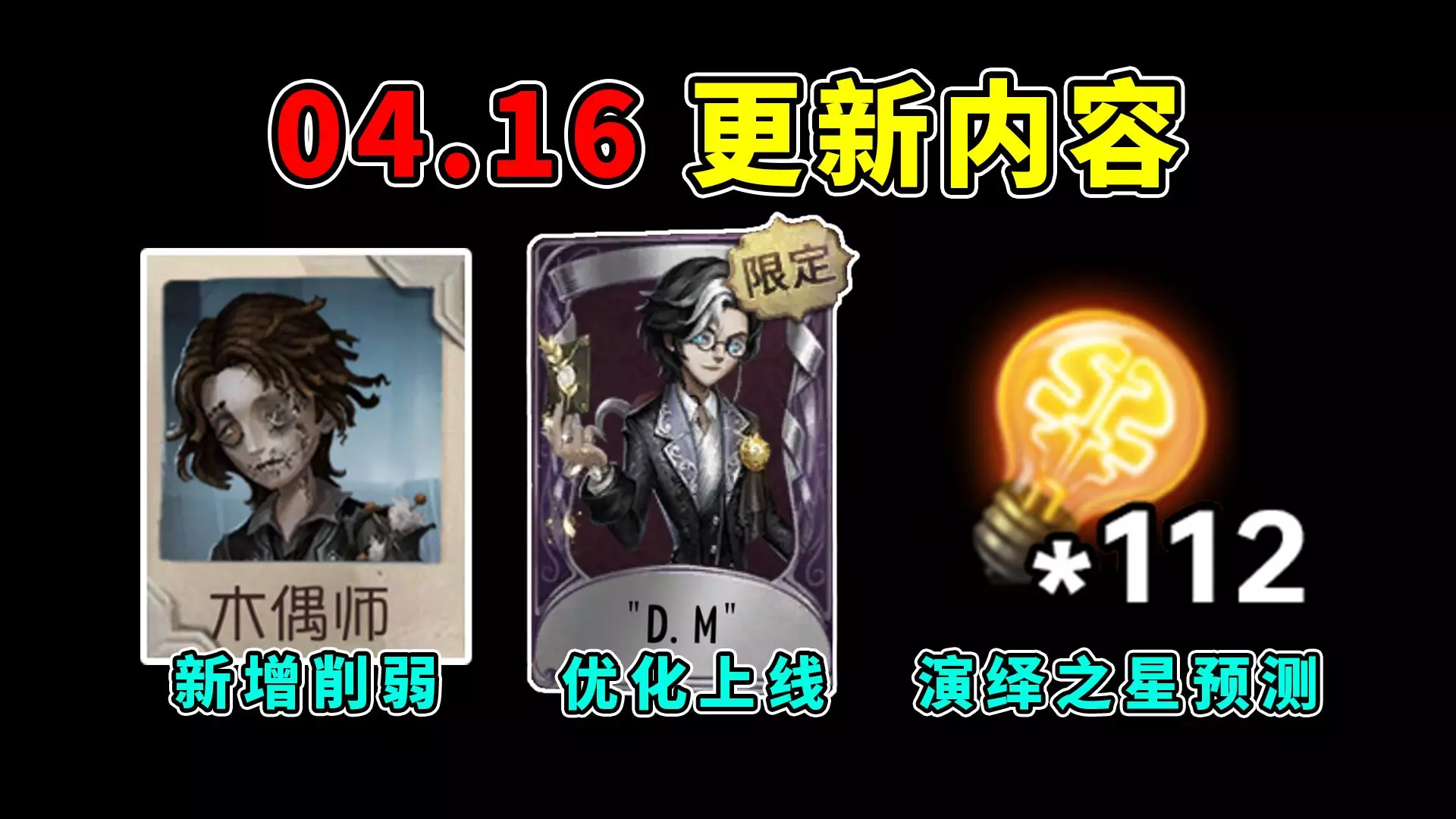 新增木偶师削弱!摄影师DM优化!周四更新内容汇总!