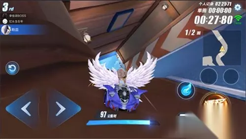 除了这一个小捷径,游戏之中还有一些小小的技巧,就比如所下方这一条管道,普通玩家们直接走赛道中央,通过赛道。这样是没有错的。但是对赛道熟悉的玩家便会靠近赛道左侧,然后利用高度差,直接飞跃到加速带。这一小小的操作便能够小阶段的与对手拉开差距。从而可以体会到急速无间断的快感。
