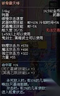 破骨霸天棒这把武器相对来说没有前面两把那么知名,原因在于它的属性没有很大亮点,只是在杀死敌人的时候有10%的几率召唤出1只墓地骷髅。为什么会召唤出骷髅?因为掉落这把武器的APC正是骷髅王。 出产APC:深渊派对-骸骨系·骷髅王
