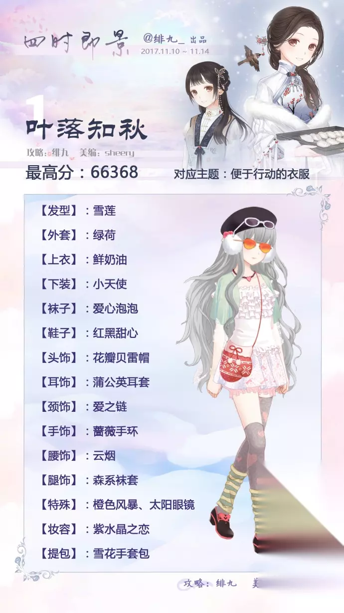暖暖环游世界四时即景高分攻略,1-5关6W+高分搭配推荐,那么一起来看看吧。 活动方式:活动期间,进入指定的活动副本,完成关卡,累计获得一定的积分(过关分数),便可以领取活动道具“叶脉书签”(10万积分可兑换一个书签——论高分的重要性)。 副本中有5个关卡,每天有免费的5次机会~1得分为F不消耗任务次数; 2. 免费次数使用完毕后,花费钻石购买的次数将会累计到第二天(每天免费次数还是会在零点刷新的哦~) 然而每天免费的5次机会不足以兑换活动套装,可以花费50钻恢复5次挑战机会,恢复次数没有上限。 立秋共需:86个书签 冬至共需:102个书签 本次两套共需:188书签 集齐两套需花费1400钻左右。之前至少1600~1800,和以往相比,省了几百钻了! 叶落知秋