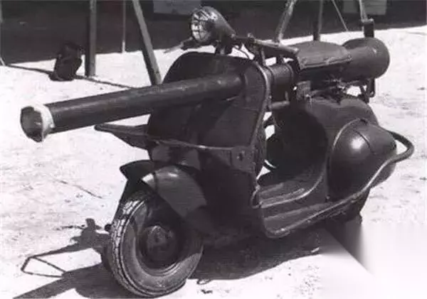 3.摩托车大炮 这是上世纪50年代法国人在越南使用的大炮。用摩托车和炮搞出这种组合是因为当时法国缺乏资金,不能提供更先进的武器,无奈只能“就地取材”。这种车主要供伞兵使用。但是,这种车的防护性很差,火炮的再装填也很成问题,所以在战争中起到的作用也非常有限。