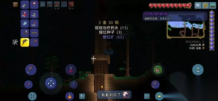 召唤克苏鲁之眼的关键道具是可疑眼球,需要6个晶状体在恶魔祭坛合成。晶状体可以通过击败夜晚出现的恶魔之眼获得,这种小怪会掉落1-2个晶状体。找到腐化之地或猩红之地的恶魔祭坛后,打开合成界面就能制作可疑眼球。记得一定要在晚上7:30之后使用,白天召唤会直接失败。
