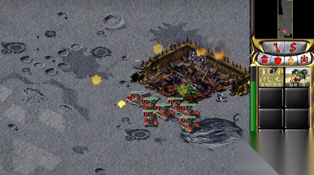 而小编认为的高光时刻就在此来临,战争进入了太空时代,与尤里在月球上建造基地一决胜负。其中也出现了许多全新的兵种单位,非常有趣。 结局就更具趣味性,被摧毁最后的基地之后,尤里并未被抓捕,并且找到了最后一台时光穿梭机,了解了时光穿梭的秘密,准备穿越改变历史。可苏俄阵营已经知晓了尤里这一计划,并且掌握了穿梭代码,使其穿越到恐龙时代的白垩纪。 在最后的画面中,迎接尤里的是一头饥肠辘辘的霸王龙~