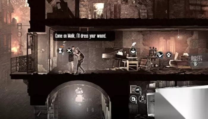 家中的医药都储存在下层,遇到伤病Malik也需要Esma帮忙照顾 《广播》另一个厚道之处就是地图的变化。地图的变化在本篇中的医院部分就有所尝试——医院在一段时间后会遭遇炮击,补给品和人物、地形会发生相应的改变,当时令很多玩家获得了极强的战争感触。《广播》将这个概念扩大化,玩家在游戏流程中会在好几张地图上遇到对应的事件,玩家可以主动参与事件,也可以放置不管,总之你有多种抉择,这些选项而后在地图里会产生具体影响。 例如,玩家在“加油站”地图里会发现,被栅栏封锁的地下室里藏有大量燃料。由于《广播》中上门的商人不再提供材料,燃料会比本篇还要珍贵,玩家就可以将这个消息广播出去,把燃料留给其他陌生的群众。 如果玩家选择广播,下次再来会发现栅栏已经被别人打开,且拾取点也基本上空空如也;如果玩家想自己拿走燃料,需要先制作锯条再去搜索,还是要费一番力气的,也使得这个选择设计如本篇那样,切实地让人左右为难。
