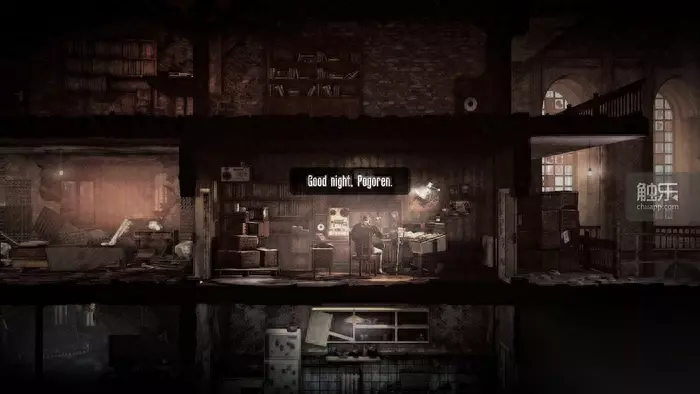 和本篇一样,玩家可以用自己希望的方式度过战争 第二个体现是和本篇接近的地图数量及质量。《父亲》中的很多地图过于单调而狭小,往往单晚能够刷完,使得流程节奏过快,一两个小时就见了结局,在10元售价下显得非常干瘪。《广播》则延续了本篇的标准,不仅有十多张大号地图,每张基本上都要至少两天才能跑全,但又兼顾了流畅性,单个地图一般不超过3天便可攻略完整,一遍玩下来有好几个小时的精致流程,显得18元的价格极其良心。 这些地图只有个别是来自本篇的,完全没有改动(如“仓库”),其他地图要么在本篇基础上进行了很多道具和攻略细节上的变动,要么是彻底的新地图,还足够大。流程上还和本篇一样,同时可选去两三个地方,保证了自由度,使得《广播》的剧情线玩上两三周目也不觉单调。再加上三四十天的战争进度也与本篇体量相当,彻底拒绝了《父亲》那种寒酸的感觉。