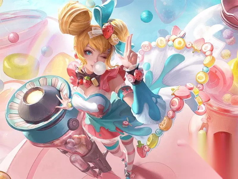 水果甜心 水果甜心皮肤出来的时候就受到了不少玩家的喜欢,毕竟孙尚香水果甜心的皮肤主题确定为外表可爱内在坚硬的“水果糖”,而且整个皮肤的设计非常的甜美,就算后面优化也保留了原皮肤的清新配色和非常有个性化的造型,主要是在服饰和发饰等细节上做了调整,以各种可爱的水果为装饰元素,武器改造成一个会喷射出缤纷糖果的玻璃糖罐,非常的符合主题。