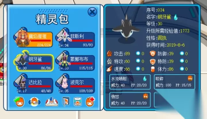 从那时候我就开始研究精灵以及克制系数相关的打法,钢牙鲨的影响可以说是很大。导致我在被击败几次后,自己也在09年10月份的时候练了一个54级的钢牙鲨。前期可以说是给我击败了很多萌新玩家,主要原因还是那时候大部分玩家都不会玩。