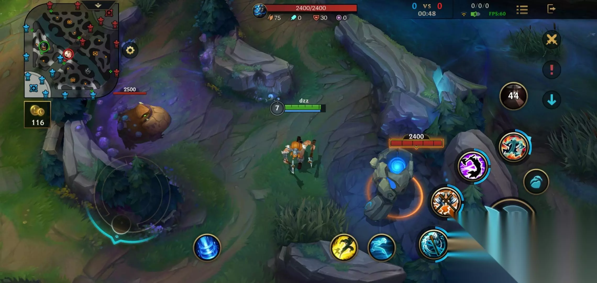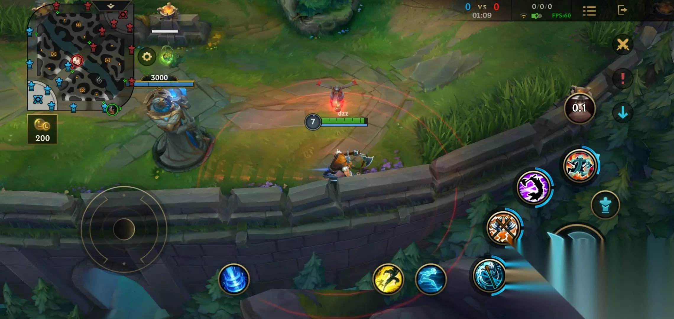 没来的时候我们就去刷一下自己的蓝,奥拉夫前期的q技能的不断释放是需要耗费很多蓝的,接着把上路河蟹和自己红区野怪全部一拿,升到五级。