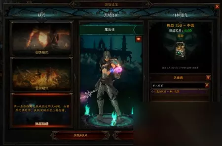 本攻略适合那些以前玩过别的赛季的,有游戏基础的玩家,因为下文提到的部分功能需要达成的目标才能解锁,比如新建角色直接开始冒险模式需要账号有过任意一个角色升到过70级等,故而不适合那些没有玩过暗黑三的玩家,没有玩过暗黑三的玩家请先体验剧情模式。 本攻略适合那些很久以前玩过一阵子,很久没玩过的玩家,一直在玩的高端玩家会觉得内容啰嗦。 本攻略主要是新赛季开荒速升70级的攻略,即你可以通过这些方式让你的孤狼开荒之路更为快捷,肯定没有过两天等大部队都开荒满级之后找朋友带70来得更快。 挑战秘境宝箱 首先就是本周的挑战秘境先不要打,就是在模式选择里的这个挑战秘境: