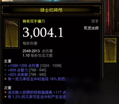 根据我的经验,刷小米升级比较安逸稳定但会慢一点,刷连杀升级会比较吃操作和运气,升级会快一点。 70级武器降装等 升到40级后,我们可以再做一件70级的金装武器,这次不是升级传说,而是要降低等级。 比如我是死灵法师,现在做了一把双手镰刀: