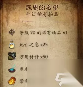 卡奈魔盒在赛斯切隆废墟的长者圣殿深处拿到,卡奈魔盒是什么就不多说了。 如果对自己的操作没有自信,可以在难度拿卡奈魔盒,难度而且你有了雇佣兵扒下来的武器,按说应该可以轻松拿到卡奈魔盒。 升级传奇装备 拿到卡奈魔盒之后,因为我们之前开启挑战宝箱获得了很多材料,所以可以先在铁匠那里做一件70级的金色装备,然后用卡奈魔盒的升级传奇功能将金色升级为传奇。 做装备需要先升级铁匠铺等级,之前挑战宝箱送了500w金币,足够升到满级的。 升级出来的因为是70级传说,我们带不上,所以用魔盒直接把他萃取,只要他的。
