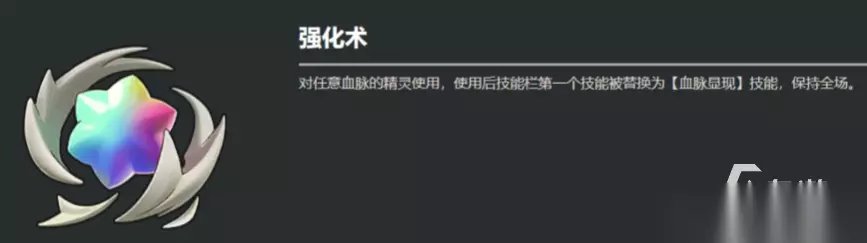 另外我们还能在这学习各种洛克魔法,例如强化术。对于任意血脉的精灵使用后,就会将第一个技能替换成为血脉显现,对敌人造成140点伤害。攻击属性是由精灵的自身血脉所决定,就能极大扩充了战斗系统的深度。想要更改精灵属性的话,又得采用药剂进行血脉改造。