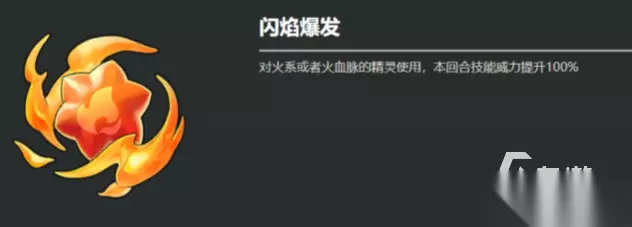 然后你还能学习光合治愈,一听上去就知道是回血的能力。你可以直接对草系或者草血脉的精灵使用,用了之后就可以恢复一半的生命和五点能量。然后还可以学习闪焰爆发,用了后可以提升火系精灵的技能威力,能够一次性打出更高的爆发伤害。