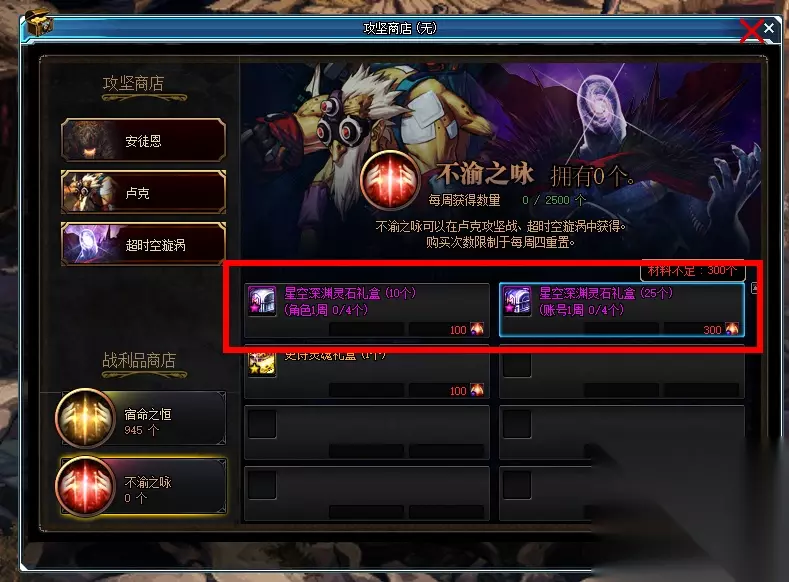 3、团本副本兑换 攻坚商店使用不渝之咏可以兑换,每周每个角色可以兑换40个星空深渊灵石,每个账号可以兑换100个,同时消耗的不渝之咏也比较大。