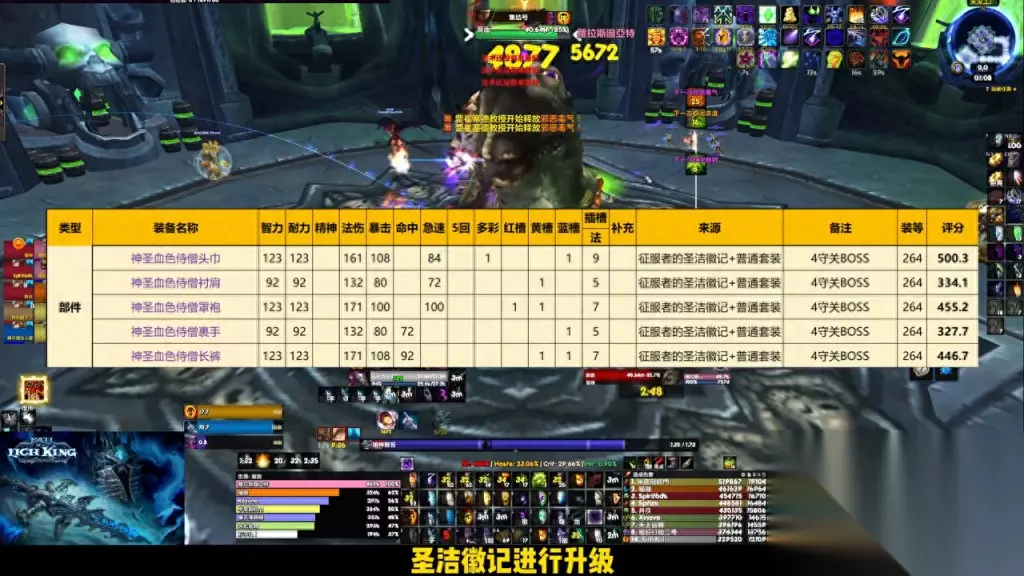 获取方式为第二档装备加h圣洁徽记进行升级。圣洁徽记在25人h中的4个守关加巫妖王这5个boss掉落,但是一次只会掉一个徽记和Toc的圣装一样。按照职业分为了三种,升级并没有部件的限制,只要获得相应的基础部件即可直接升级。T10套装的效果非常强大,可以为暗牧提供至少10%的DPS增益。