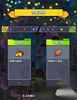 4、技能 技能选择的时候将有概率出现一袋金币,能获得少量金币