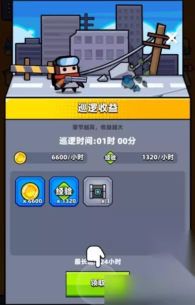 5、巡逻收益 巡逻收益其实就是离线收益了,时间越长奖励越多,其中包括金币和经验等