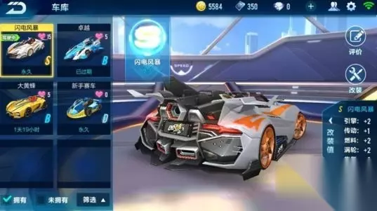 闪电风暴是一个S级赛季,拥有其他A、B级赛车无法比拟的属性。闪电风暴氮气特效也是非常出色的。