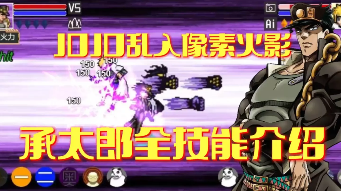 JOJO乱入像素火影,承太郎如果在决斗场中会是什么表现呢? 承太郎素材来自mugen,部分特效后续会继续优化。