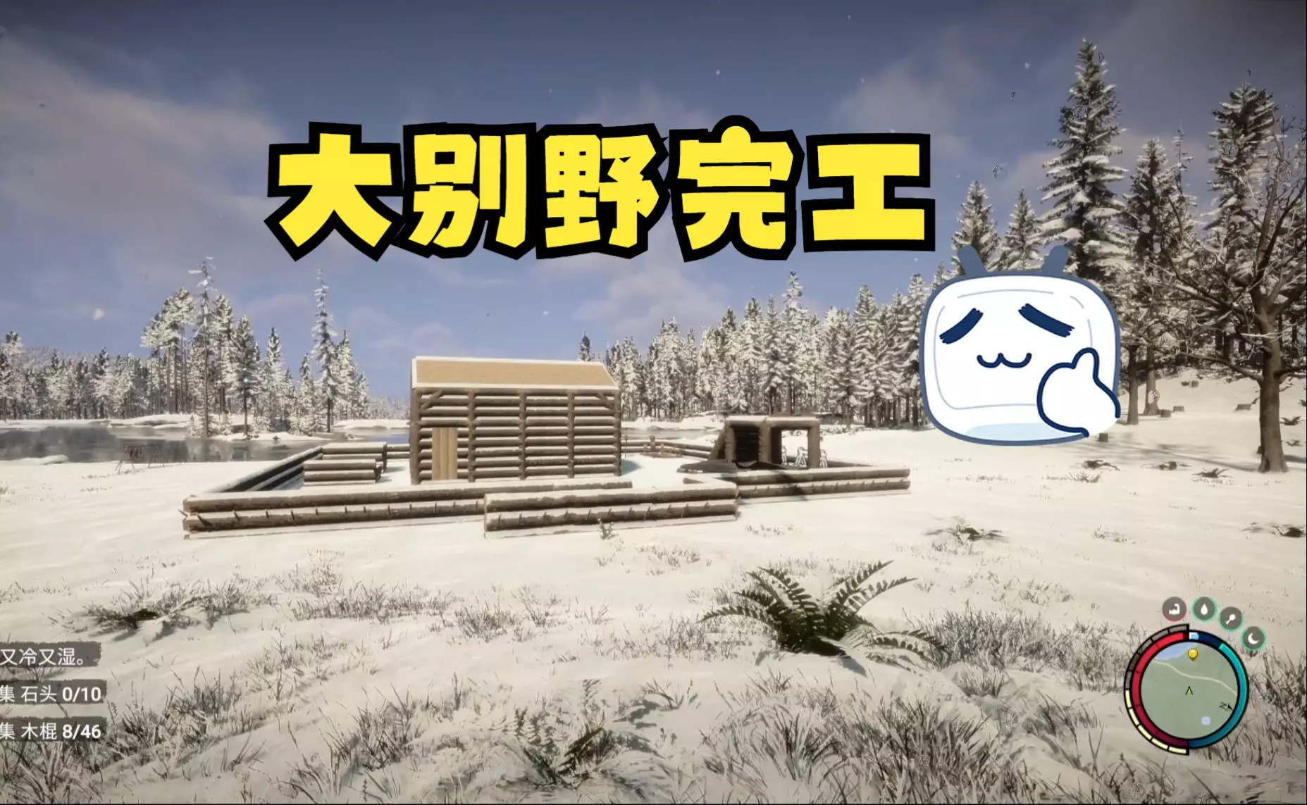 这是联机游戏《森林之子》的游戏内容分享,展示了游戏里建造的温馨木屋,屋内铺有鹿皮装饰,还有不同角度的木屋内外场景,呈现出在游戏里安逸的生存体验。