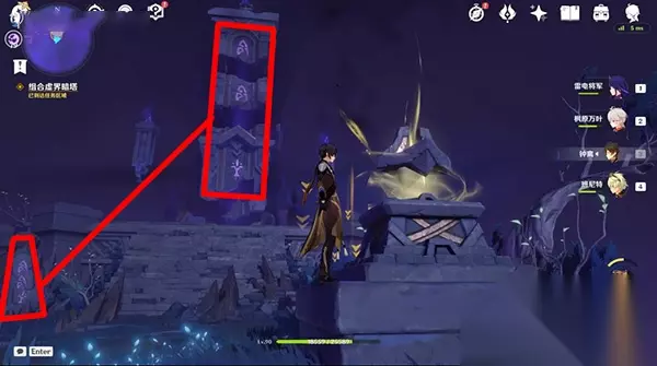 4、其中只有获取到【前往西北的虚界暗塔】线索之后使用睦疏之匣靠近“眬幻平台”才能够显示实体,从而找到落脚点,完成之后和久濑对话,之后跟随雷种子走,到达任务地点之后启动“虚界暗塔的控制器”。 注意:启动虚界暗塔的控制器需要【10个壳之宝石、5个常世之荚、5个渊海髓矿】道具,玩家们玩做这个任务之前需要多收集准备一些。