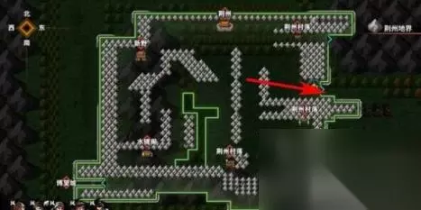 出大殿之后,可以发现,蔡瑁带兵前来意图不轨,如下图箭头所指,这就是刘表提到的密道的所在地。