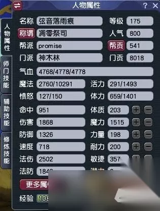 人物属性及召唤兽属性