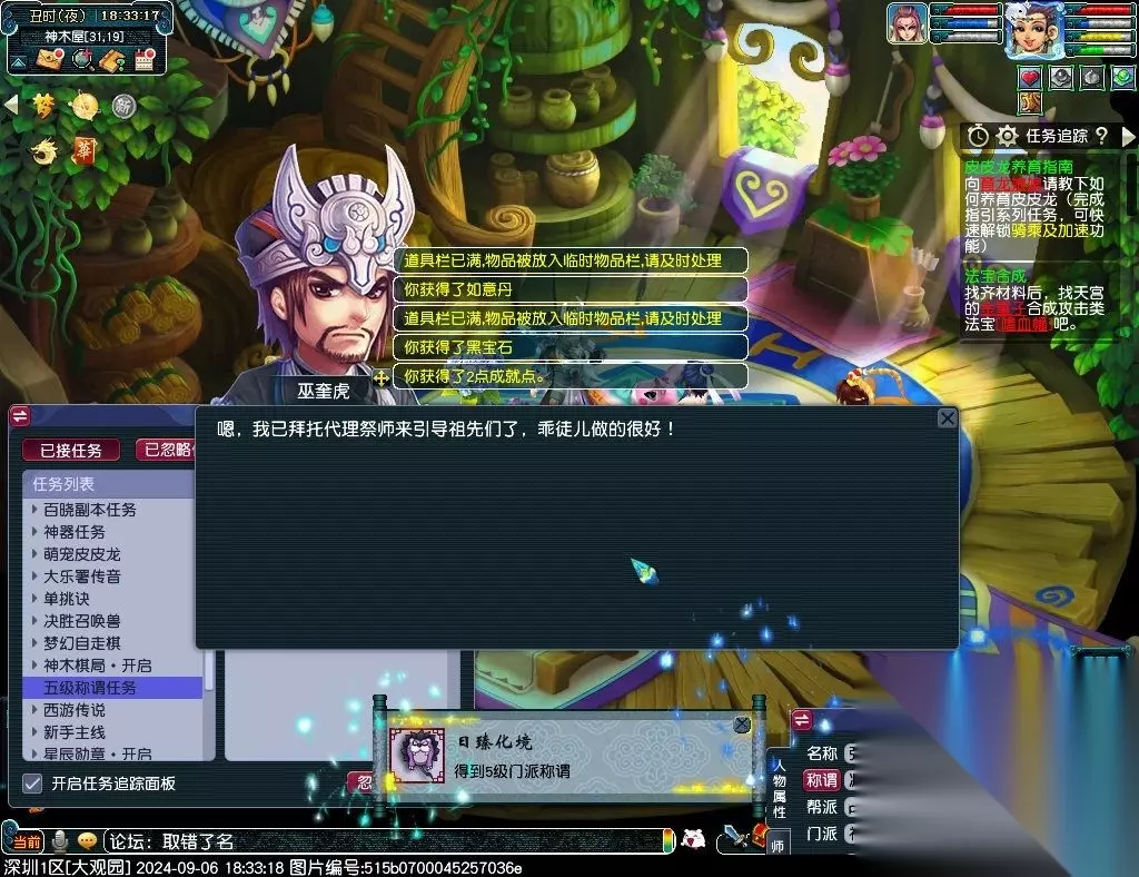 14、跟师傅巫奎虎报告一切(完成称谓任务,获得2点成就)