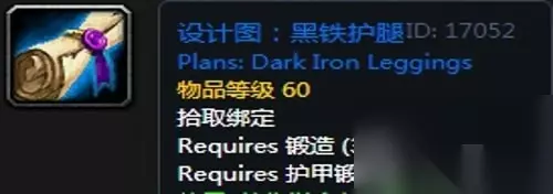 【黑铁护腿】 需要:护甲锻造师