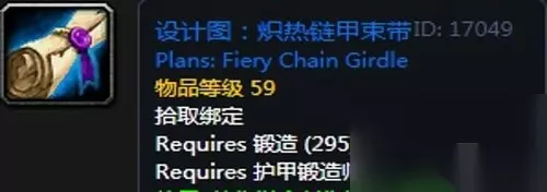 【炽热链甲束带】 需要:护甲锻造师