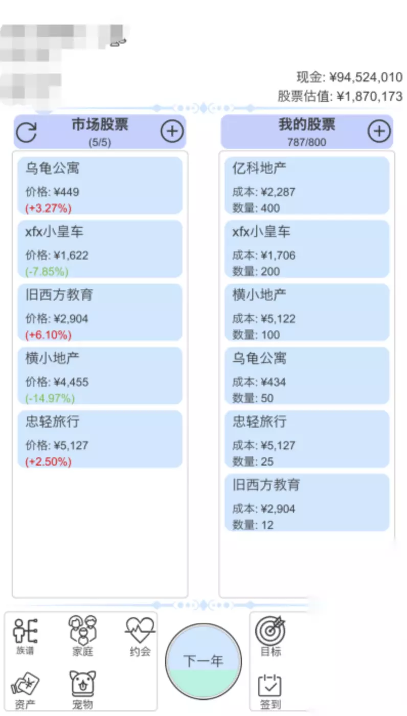 覆盖股票、债券、房地产及创业项目等多维资产类别,强调自主研判能力。玩家需结合宏观信号与微观指标判断入场/离场时机,决策权重显著高于自动运行模块。挂机功能缓解盯盘压力,但进阶玩法仍需深入研究市场周期与政策动向。内置社交体系支持组队协同投资、参与限时赛事,便于经验共享与策略验证。动态事件系统(如突发政策调整、行业黑天鹅)强制触发策略重置,有效打破线性成长路径,增强真实感与耐玩度。 高速下载 普通下载 4、《股票游戏玩股成金》