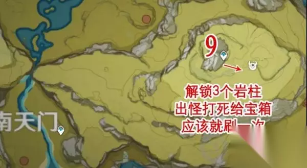 第九只:解锁三个岩柱,就能刷到,应该只刷新一次。