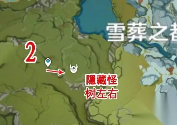 第二只:在雪山左边传送点,是隐藏怪,在树的左右位置;