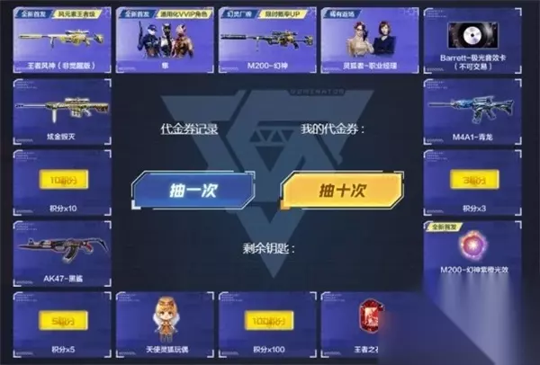 积分兑换奖励 王者风神(非觉醒版)-888积分 隼-598积分 M200-幻神548积分 灵狐者-职业经理428积分 Barrett-极光音效卡(不可交易)298积分 炫金毁灭218积分 M4A1-青龙218积分 AK47-黑鲨148积分 M200-幻神紫橙光效(不可交易)58积分 天使灵狐玩偶28积分 属性变更券8积分 交易专用钥匙2积分