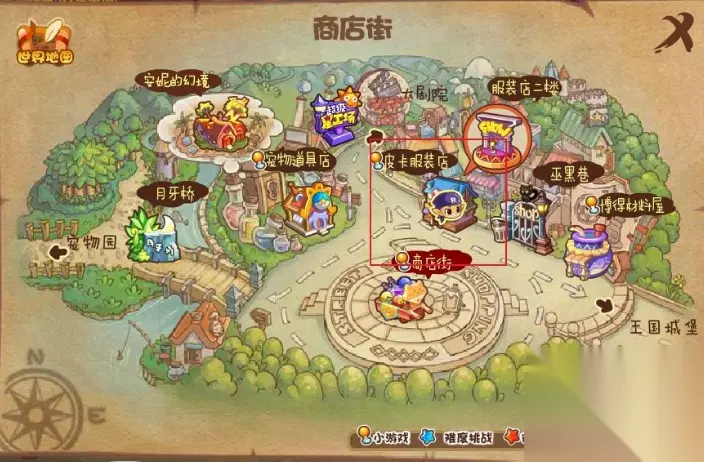 魅力:可以通过玩时尚小裁缝这个游戏得到。 1、玩家先进入商店街,再进入皮卡服装店。