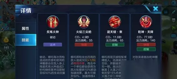 千钧一发!哪吒的必杀技能“三昧真火”的威力无人能敌。 火热挑战!哪吒的主动技能“火尖枪”如何打出最大伤害? 战略选择!哪吒的技能“金身之术”如何在危急时刻保护自己? 团队合作!哪吒的被动技能“混天绫”如何给队友提供支援? 开团利器!哪吒的技能“如意真石”如何打出连招的威力? 敌人必备!哪吒的技能“真言御剑”如何减速、眩晕对手? 防守利器!哪吒的技能“大力金刚臂”如何在塔下保护自己? 技能加点!哪吒的技能升级顺序应该如何安排? 出装建议!哪吒的装备选择如何提升技能效果? 合理搭配!哪吒与其他英雄的组合战术如何发挥最大优势? 对线策略!哪吒在与不同英雄对线时应该注意什么? 击杀利器!哪吒在团战中如何选择目标并打出最大伤害? 应对反击!哪吒如何在被反打时使用技能保护自己? 团队作战!哪吒在团战中扮演怎样的角色和位置? 通过掌握王者荣耀哪吒的技能玩法攻略,你将成为一位无人能敌的强力战士! 本文详细介绍了王者荣耀英雄哪吒的技能玩法攻略。通过掌握关键技能,玩家可以成为一名强力战士,在游戏中取得更好的战绩。希望本文对玩家们有所帮助,能够在王者荣耀的战场上展现出自己的实力和魅力! 《王者荣耀》是一款风靡全球的多人在线游戏,其中的英雄角色各具特色,而哪吒作为其中的一名英雄,拥有强大的技能和战斗力。本文将详细介绍哪吒的技能玩法攻略,帮助玩家更好地掌握这位强大的英雄。