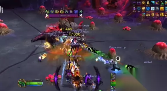 4、并且这个boss还有一个可以全团释放aoe,并且奶量回复护盾,需要牧师来交减伤大抬血解决。
