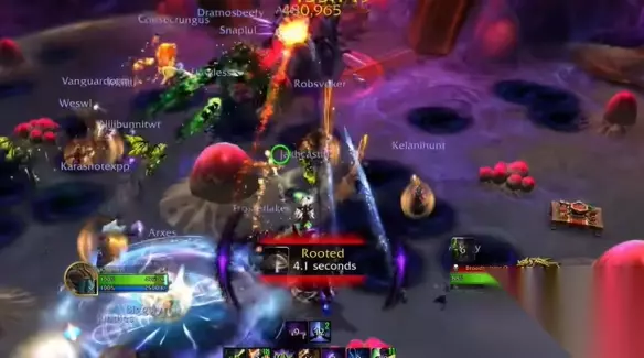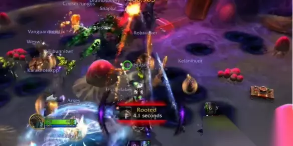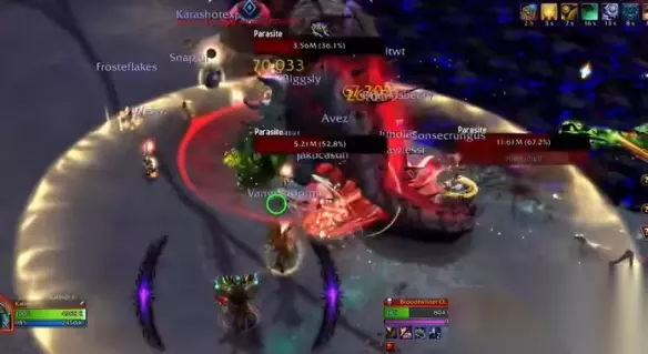 5、随后他会使用全场战斗最重要的点名技能,就会让多名玩家脚下出现小圈,需要去套住力黑水最近的四个虫卵,避免导致团灭。