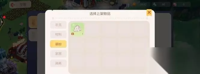 4、在弹出的上架物品页面,选择左侧的【装扮】。